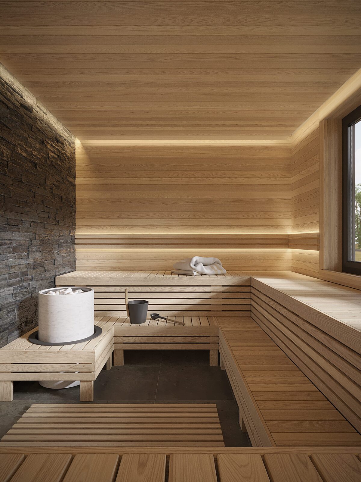 • Cold zones: plunge pool, outdoor rest